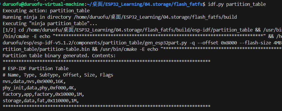 配置好可以使用idf.py partition_table生成二进制分区表