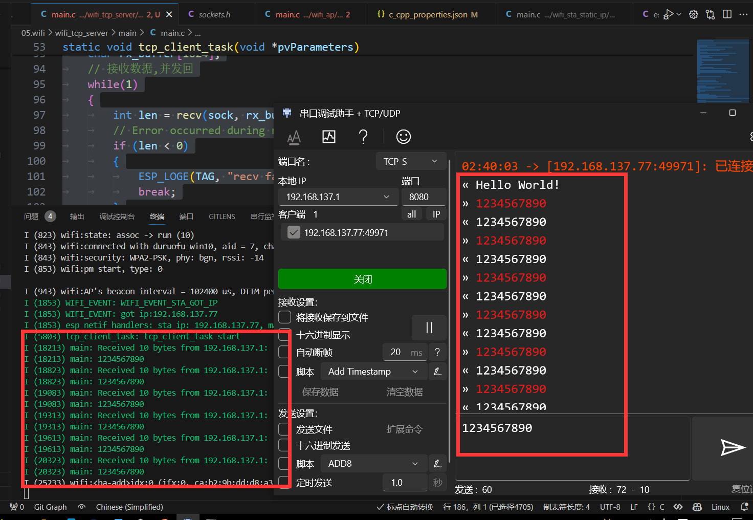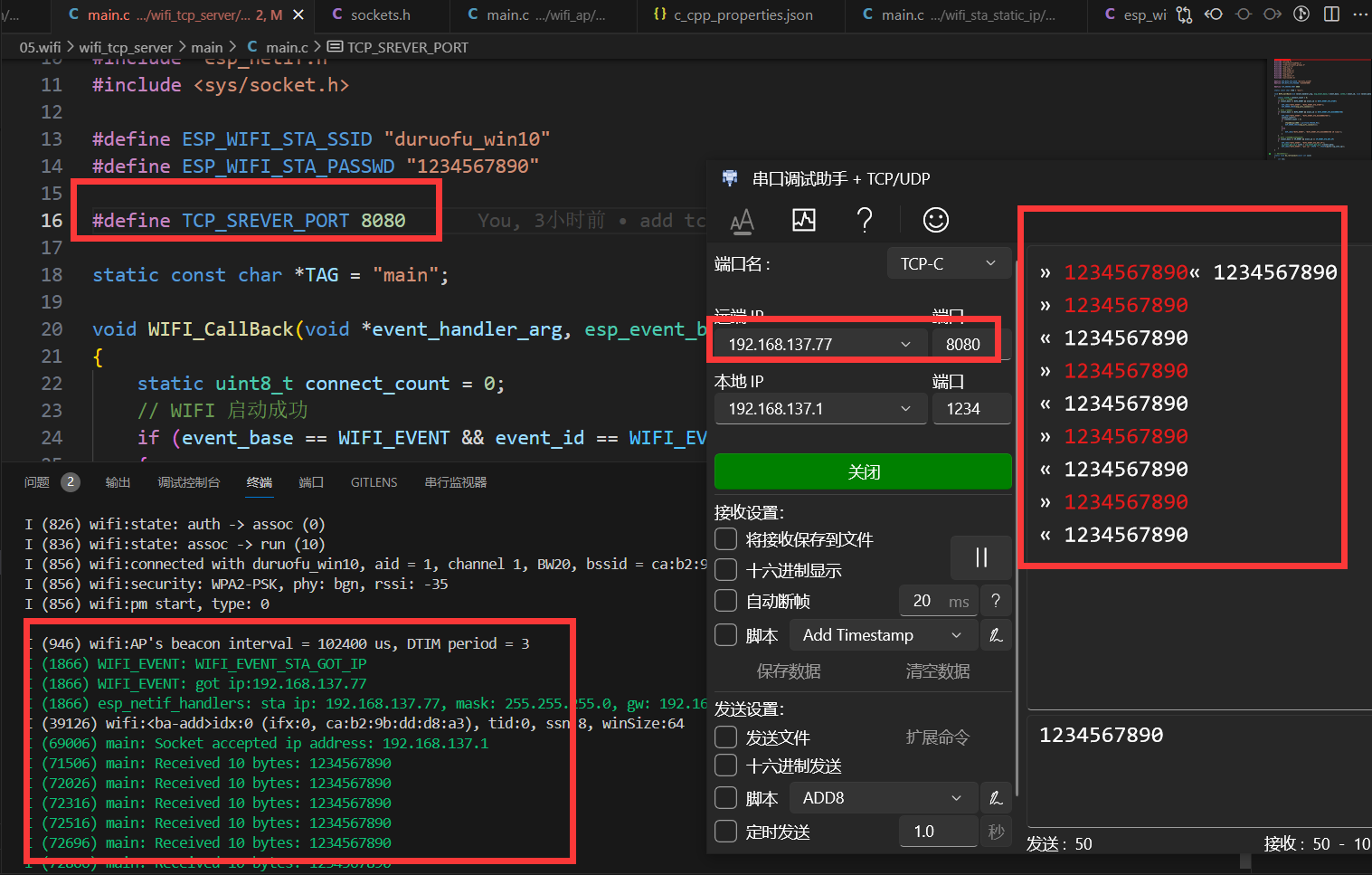 代码见: https://github.com/DuRuofu/ESP32_Learning/tree/master/05.wifi/wifi_tcp_server