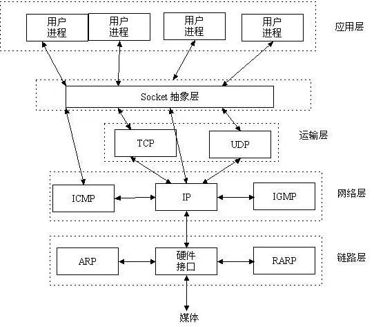 网络协议是很复杂的它的硬件接口可以是WIFI网线4G网卡等我们开发网络程序不可能亲自去了解这些物理层链路层的网络协议和实现。我们通过抽象出统一的上层建筑Socket来完成代码编写这样无论底层链路层网络层是何种形式我们需要考虑的东西都是相同的Socket的概念是一样的