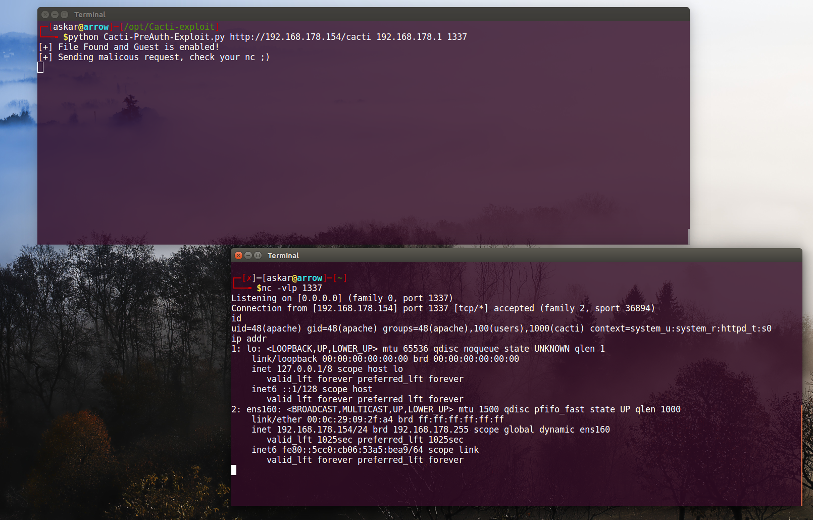print("[~] Usage : ./Cacti-exploit.py url ip port")