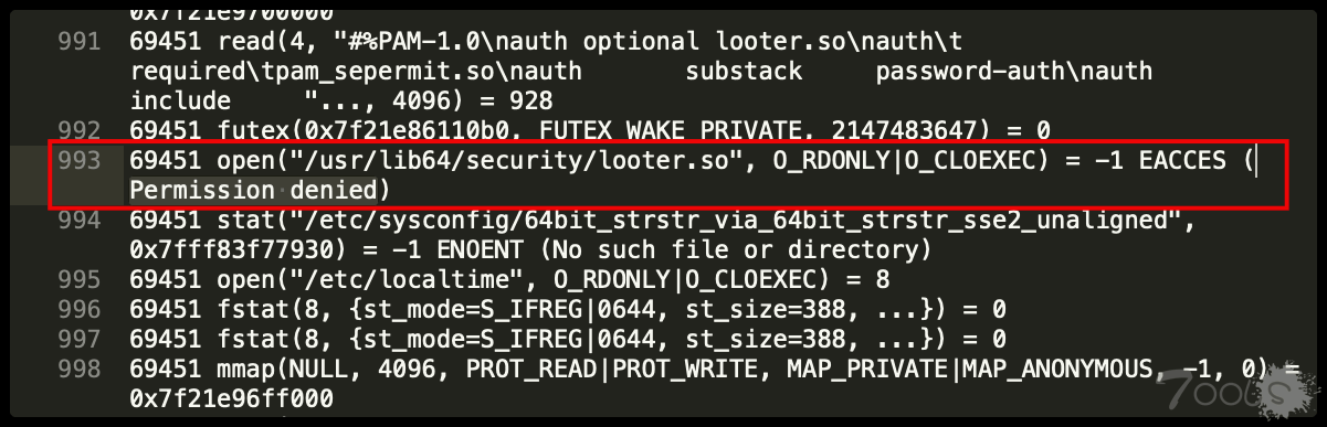 将looter.so存放到/usr/lib64/security/目录下。 需要同时修改/etc/pam.d/password-auth/etc/pam.d/system-auth,将auth optional looter.so添加到文件开头。 然后非常关键的一步操作做实验时不知道有SELinux这个机制差点又自闭了