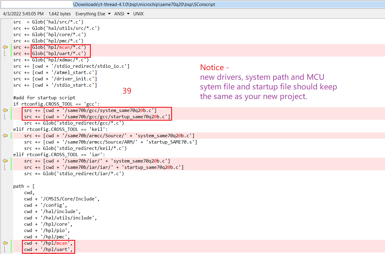 Modify rt-thread-xxx\bsp\microchip\same70q20\bsp\SConscript.