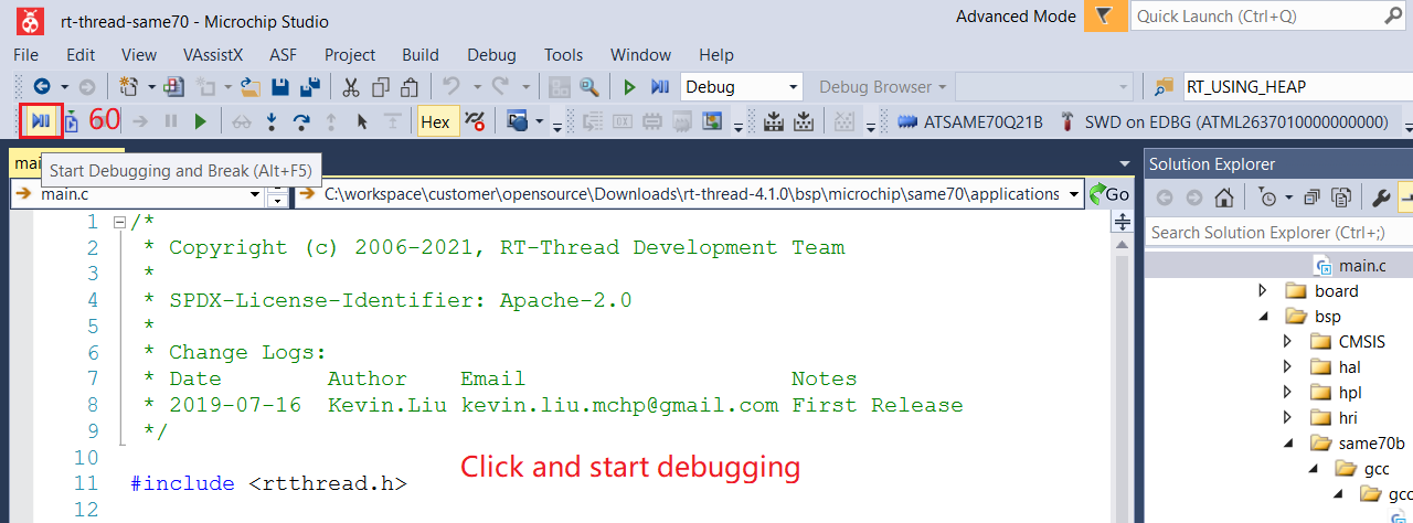 3. RT-Thread debugging with Microchip IDE