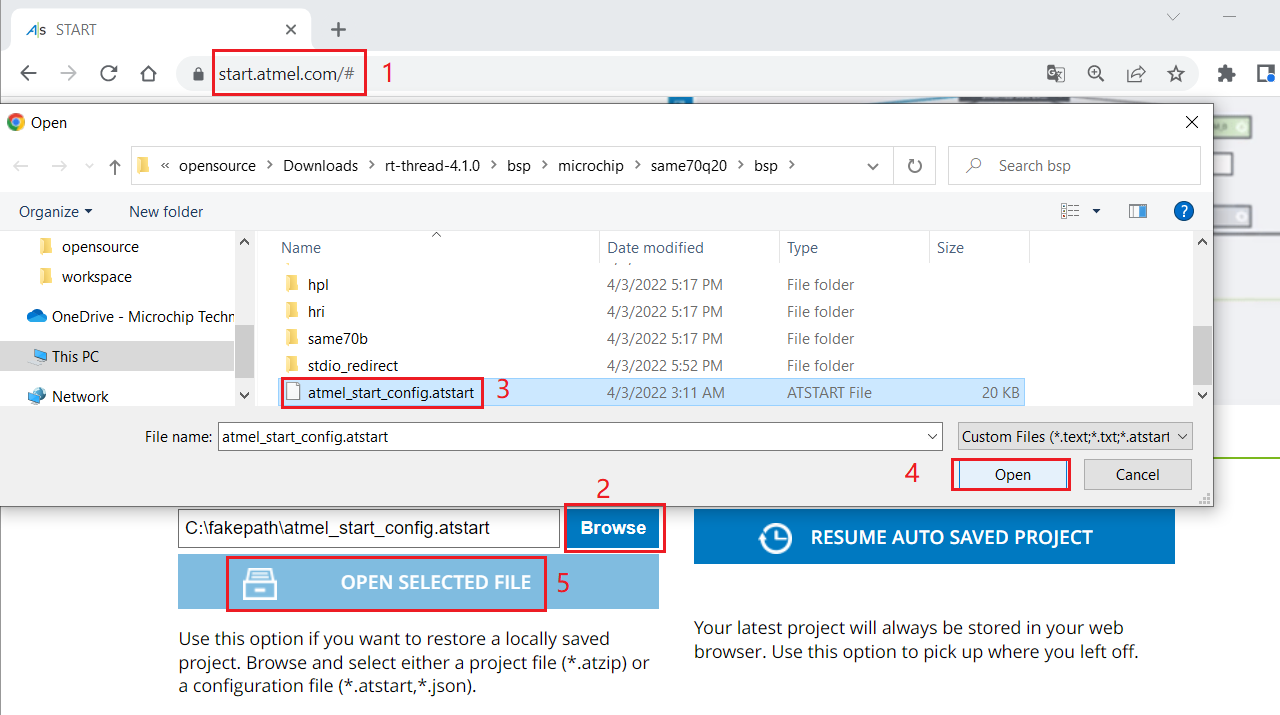Visit https://start.atmel.com/# and upload project configuration.