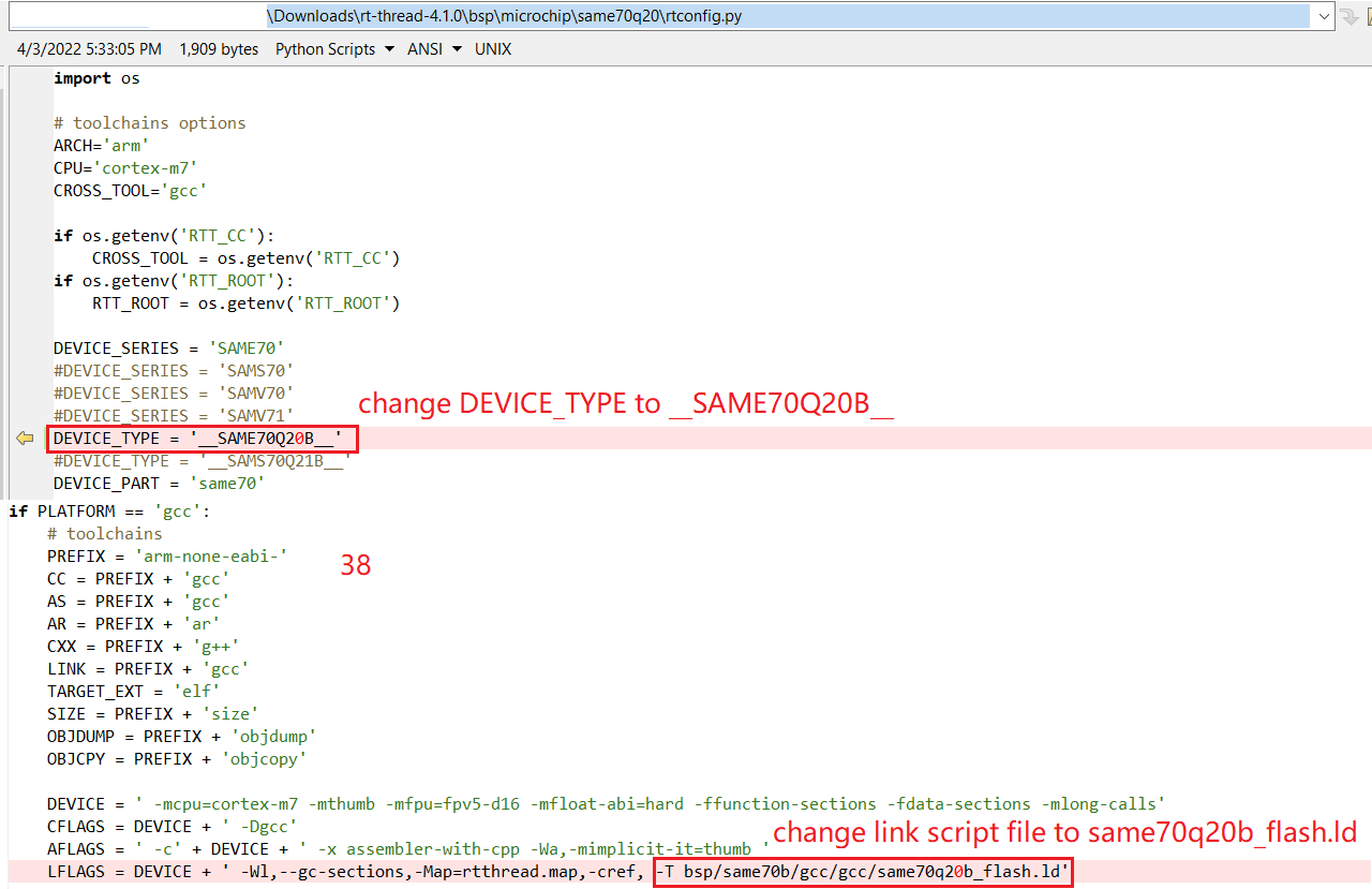 * Modify rt-thread-xxx\bsp\microchip\same70q20\rtconfig.py.
