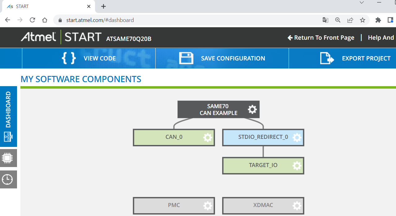 * Visit <https://start.atmel.com/#> and upload project configuration.